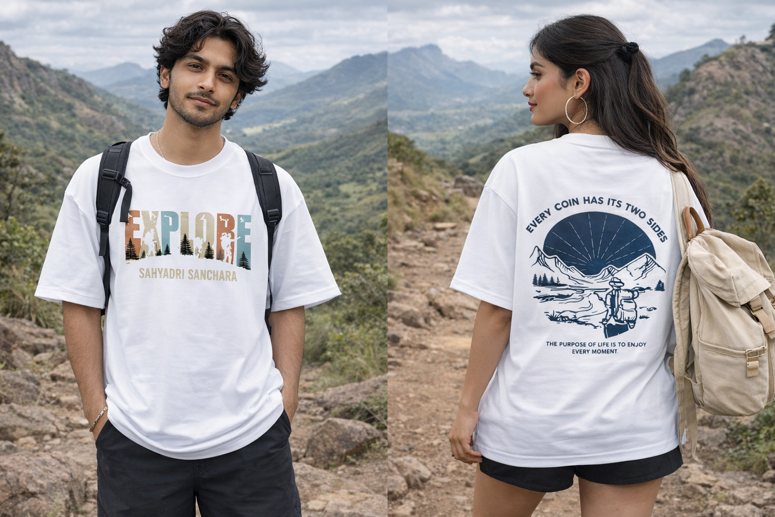 BACK PRINT Unisex OVERSIZED T-SHIRT – White with travel Edition